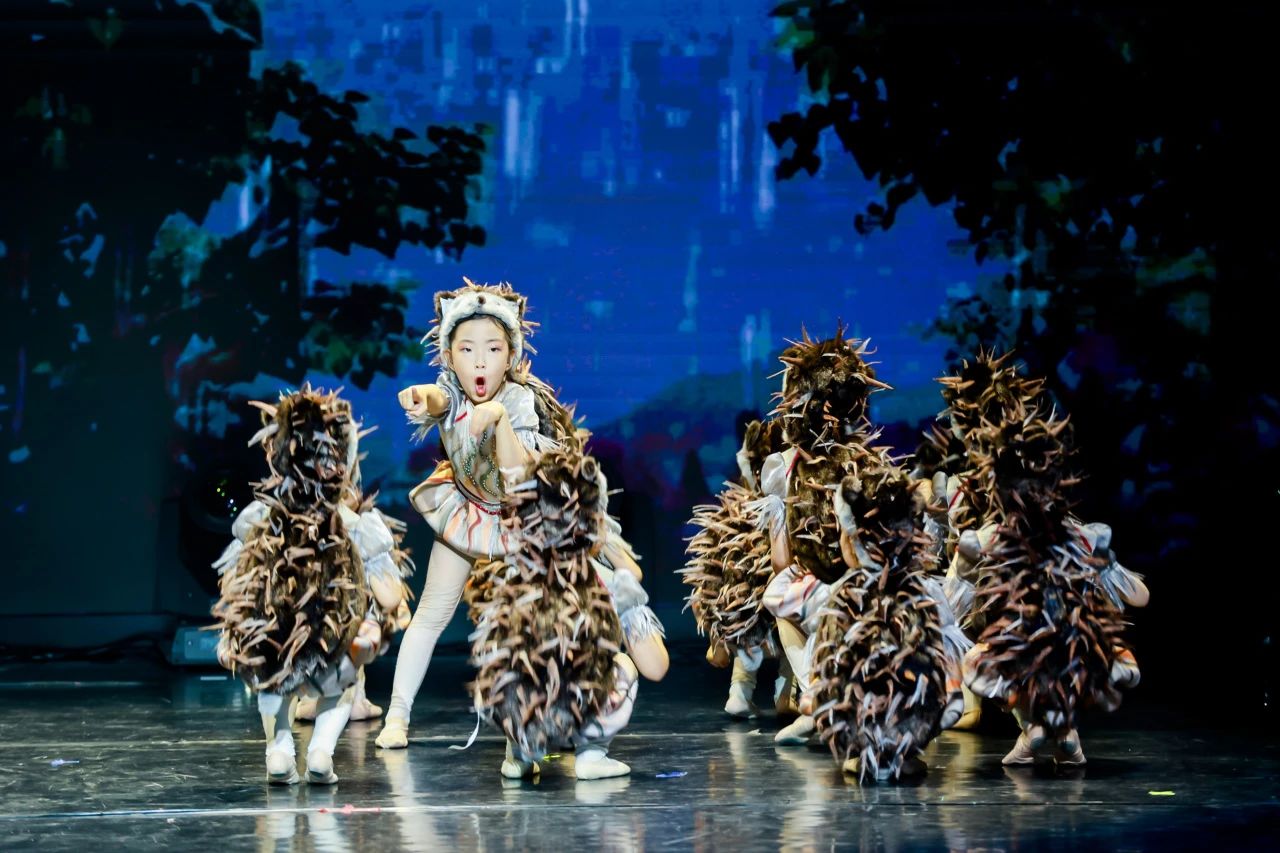 原创舞蹈表演《森林奇遇记》,小朋友们化身小刺猬,通过灵动可爱的舞蹈动作,向观众展现了一个不惧困难、克服逆境的故事。