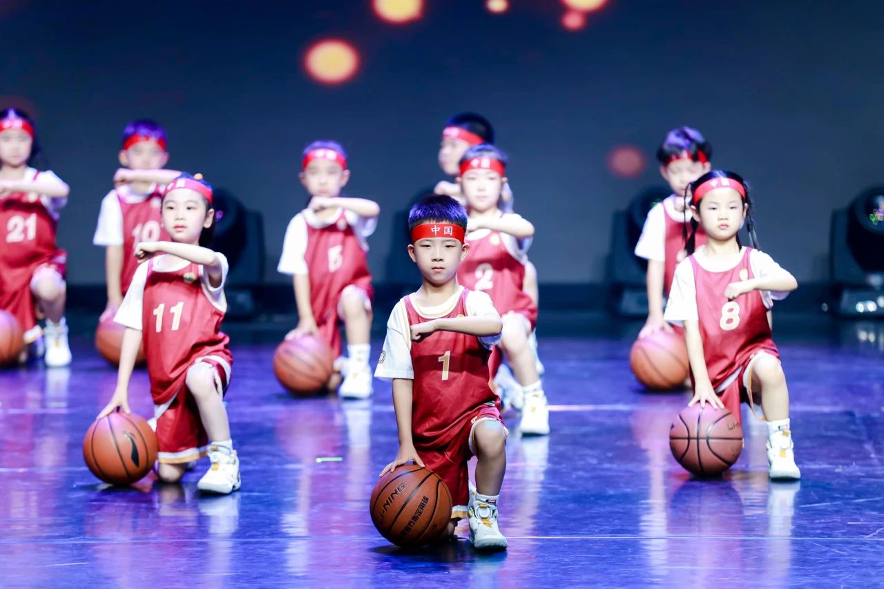 篮球与韵律碰撞,活力共激情齐飞。这群小朋友们将篮球巧妙地融入动感的节奏中,用灵活的肢体动作诠释着篮球运动的别样魅力。篮球在他们的掌控下,或拍或转或抛,精准有力,与音乐完美契合。篮球,不仅是一项运动,更是勇气、团队协作和拼搏精神的象征。他们用活力、让我们把目光聚焦在舞台上,一同欣赏这场充满创意与激情的篮球操表演。