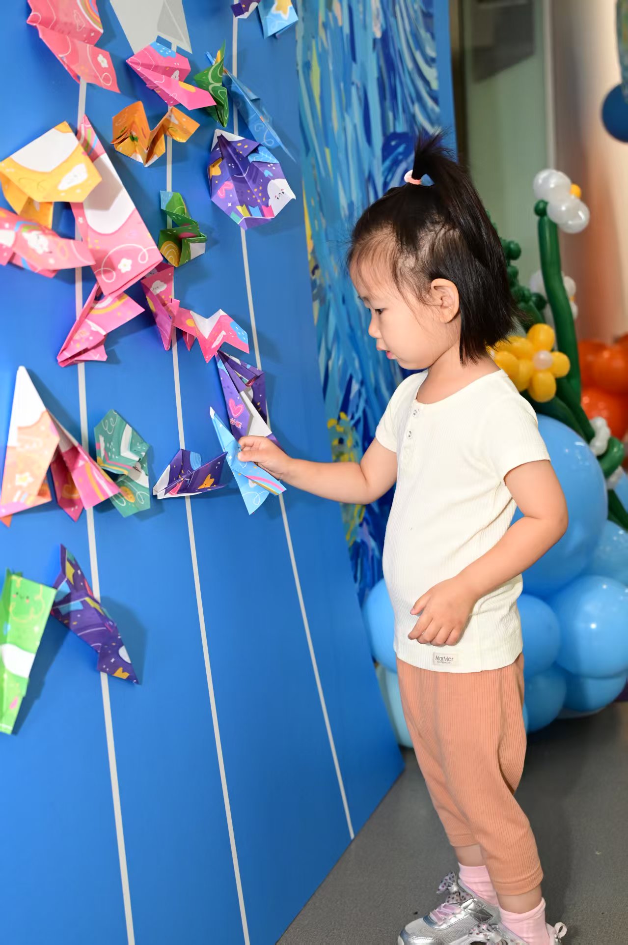 以纸为媒,以梦为翼。家长与宝贝携手,在签到区共同折出象征启航的彩色纸飞机。一笔一画的署名,是成长的印记;轻轻一贴的动作,是放飞的承诺。当形态各异的飞机群聚于“梦想板”,仿佛托育园时光凝聚的温暖力量,正为宝贝们即将开启的崭新航程加油鼓劲。