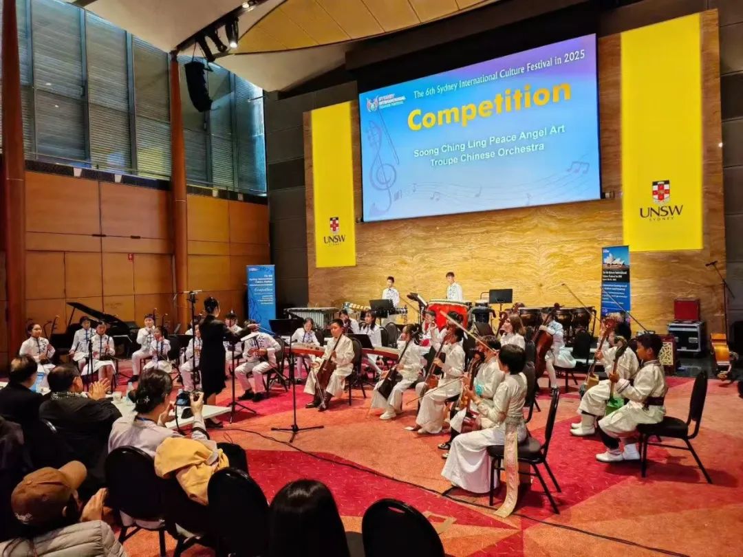 8月8日,宋庆龄和平天使艺术团赴澳交流团一行37人抵达澳大利亚悉尼,正式开启文化交流之旅。师生抵达后不顾旅途劳顿,直接奔赴第六届悉尼国际艺术节比赛现场。他们以精湛的技艺奏响了民乐作品《和韵未来》与《万马奔腾》,将中国民乐的独特魅力展现得淋漓尽致,最终凭借出色的表现斩获金奖第一名的优异成绩。