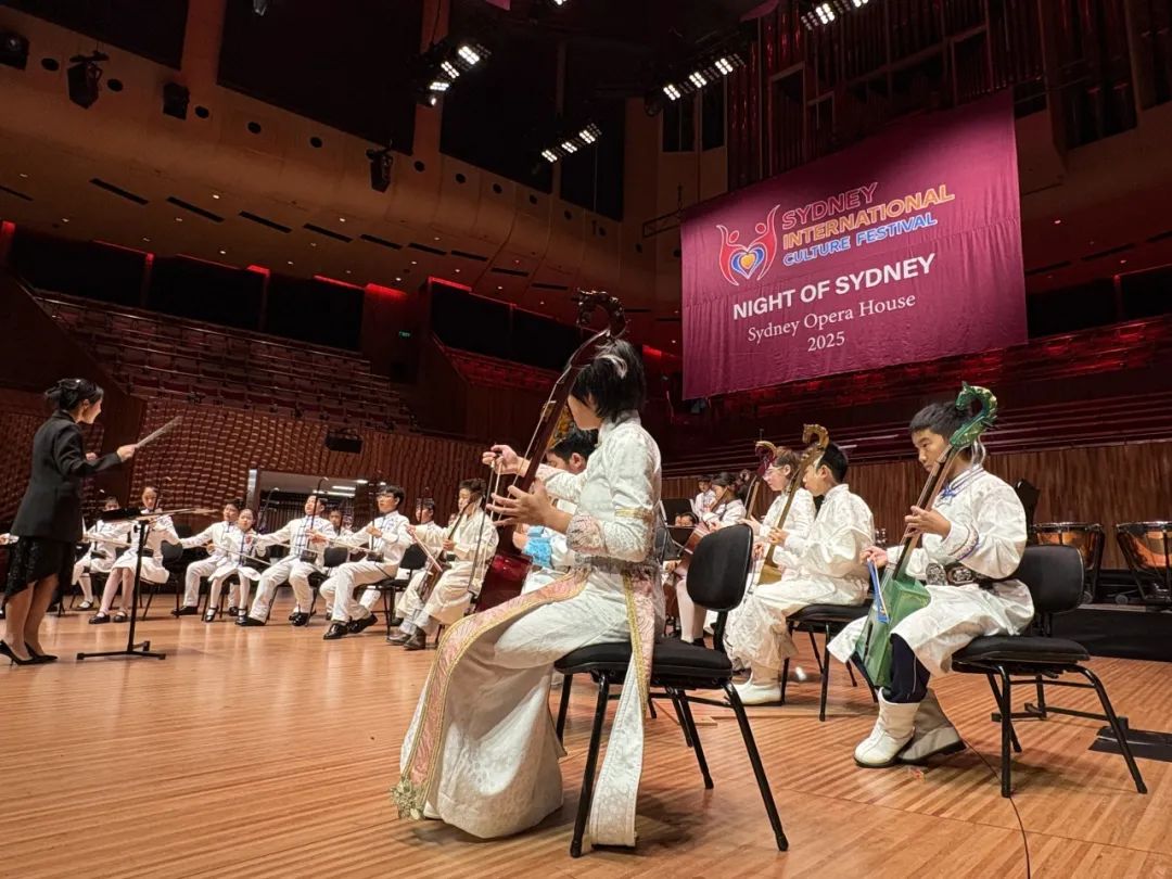 9日晚,在备受瞩目的「悉尼之夜」颁奖盛典音乐会上,悉尼歌剧院内灯火辉煌、座无虚席。当宋庆龄和平天使艺术团民乐团奏响原创曲目《和韵未来》时,那悠扬婉转、灵动跳跃的旋律如潺潺溪流,淌入每一位观众的心田。现场2000多位观众被中国民乐那独特的艺术魅力深深吸引,沉浸在这美妙的音乐世界中。一曲终了,余音袅袅,观众们纷纷报以热烈的掌声,以表达对这场精彩演出的赞赏与喜爱。