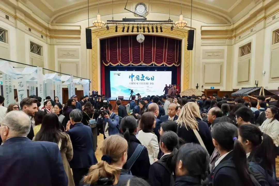 12日,艺术团抵达墨尔本,应邀出席由驻墨尔本总领事馆主办的“中国文化日”活动,并进行了专场演出。在拥有近2000位当地青少年观众的演出现场,马头琴齐奏《万马奔腾》先声夺人;绛州鼓乐《牛斗虎》双鼓对擂,声震厅堂;竹笛重奏《扬鞭催马运粮忙》与二胡重奏《新赛马》连番升温;马头琴《草原之歌》借《鸿雁》《酒歌》寄寓中澳情谊;江南小合奏《采茶舞曲》《喜洋洋》茶香与节庆交融;最后压轴节目——20 人合唱《灯火里的中国》让掌声在墨尔本Box Hill市政厅内久久回荡。
