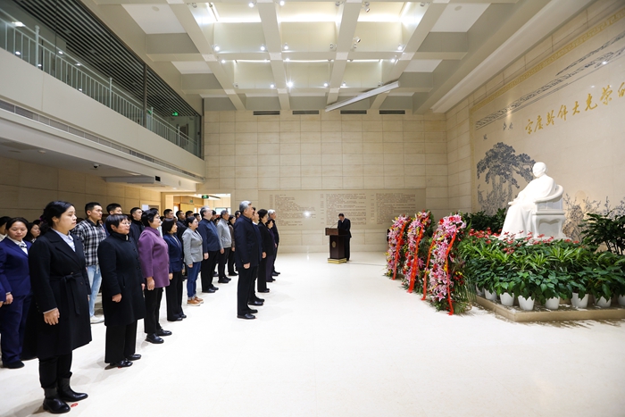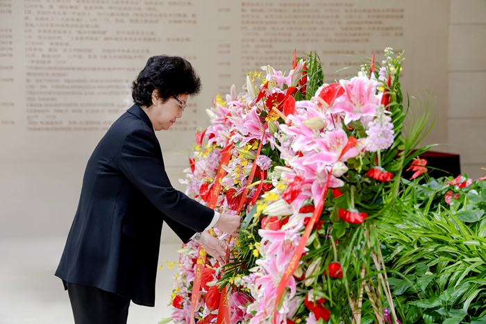 中国宋庆龄基金会主席李斌向宋庆龄汉白玉雕像敬献花篮,带领全场人员肃立并向宋庆龄雕像三鞠躬。党组书记、副主席沈蓓莉,党组成员、秘书长陈宏曲,副秘书长吴殿武、李安晋,机关各部门、各直属事业单位主要负责同志出席。故居工作人员、志愿者和武警官兵代表参加。