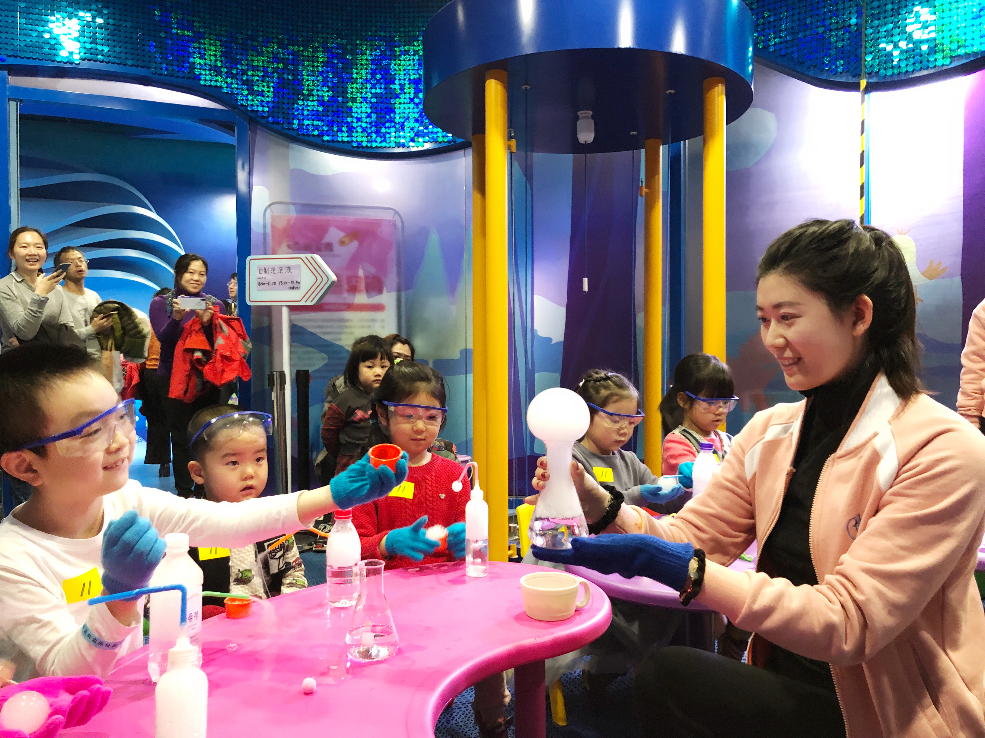 体验中心位于主楼二至四层,共有创、蒙、粹三个空间,是面向儿童、青少年构建科技、艺术、文化、运动、自然教育、社会交往六大体系的体验教育平台。通过体验式教育,激发儿童、青少年科技创新的灵感,启迪儿童多元智能的发展,传播中华优秀传统文化蕴含的思想观念、人文精神、道德规范,引导儿童、青少年构筑健康品格,养成良好习惯,提升综合素养。