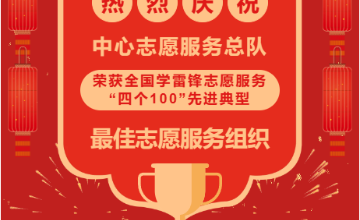 喜报丨中心志愿服务总队荣获全国学雷锋志愿服务“四个100”先进典型最佳志愿服务组织