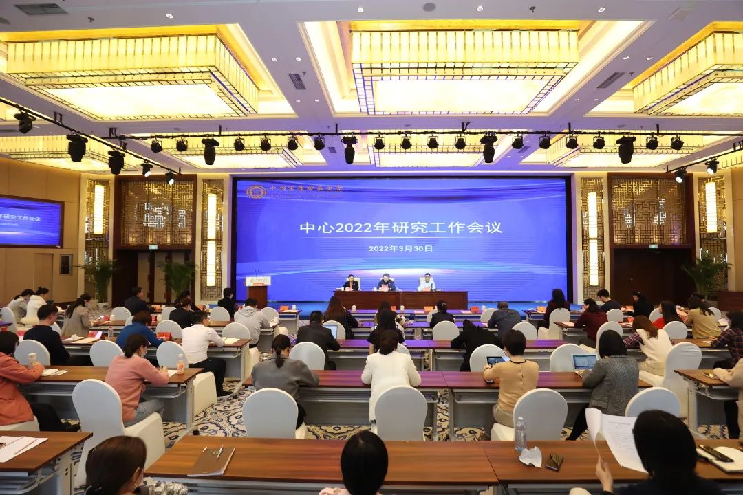 2022年3月30日下午,中心召开2022年研究工作会议。会议的主要任务是:总结2021年研究工作,部署2022年研究任务,通过加强和改进研究工作,落实中央和基金会部署,贯彻《中心2021-2025年发展规划纲要》,助力中心更好地把握新发展阶段、贯彻新发展理念、构建新发展格局,实现事业高质量发展。中心班子成员、中层干部、党支部书记、各部门研究专员、干部职工、志愿者代表、委托服务团队员工代表及交流营地员工代表参加会议。