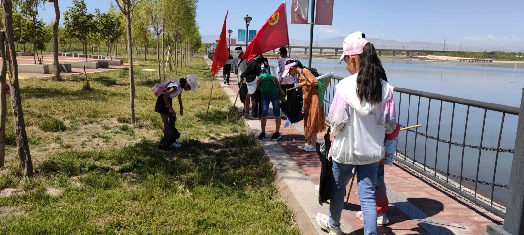 “可持续发展 青少年在行动——加油小河长” 系列活动之张掖站巡河护河环保实践活动正在进行