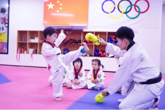 极注意礼仪及道德的竞技奥运项目,开展跆拳道课程,能够起到健体、启智、育心、锻炼意志、培养勇敢精神等多重作用,且能增强孩子的心理素质和胆量,其推崇“礼始礼终”的尚武精神对孩子的精神品格建设十分有利。